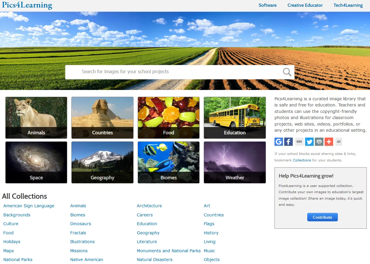 Serwis stworzony z myślą o uczniach i nauczycielach. Zdjęcia podzielone są na kategorie, które mogą pomóc w wyszukiwaniu ich do szkolnych projektów np. geografia, pogoda, mapy itp. Serwis dostępny jest w języku angielskim.