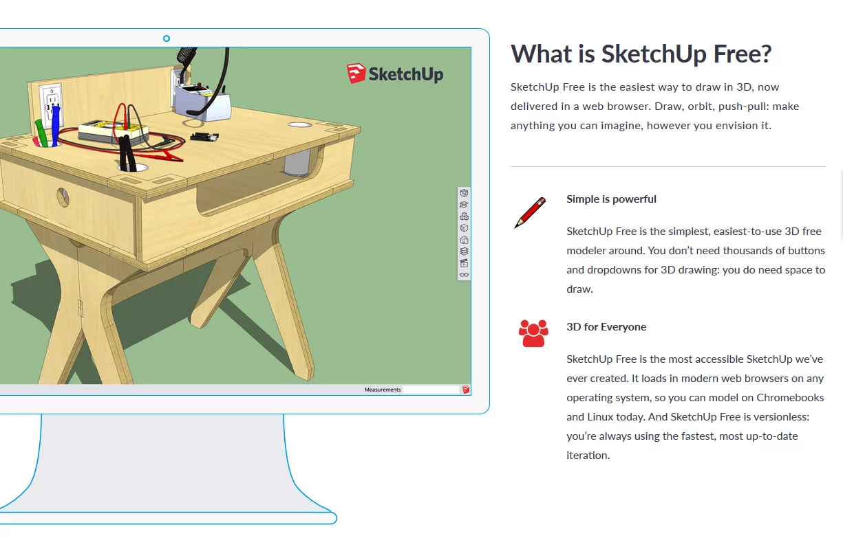 Jest to przeglądarkowa wersja popularnego narzędzie SketchUp. Darmowe narzędzie umożliwia korzystanie z wielu opcji modelowania i rysowania. Użytkownik może także skorzystać z gotowych szablonów.