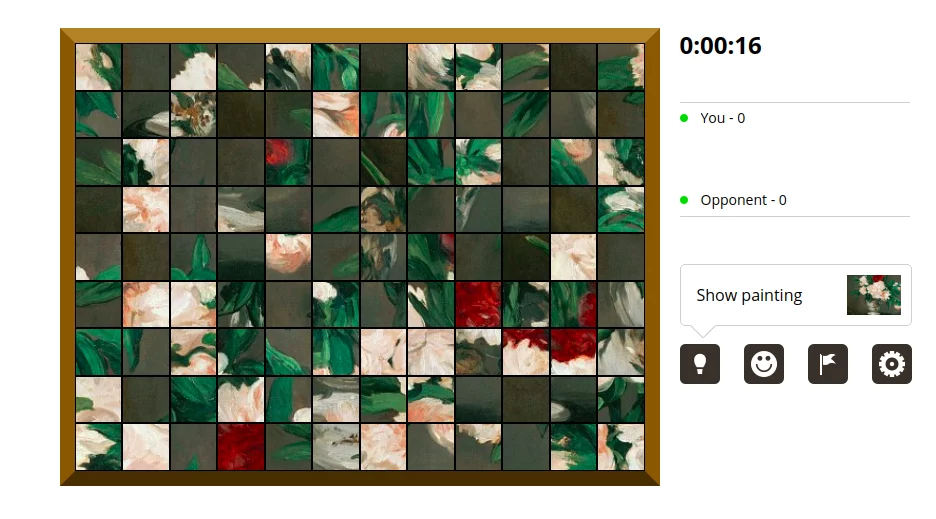 Puzzle na opisywanym przez nas serwisie różnią się nieco od tych standardowych. Składają się z pól, kwadratów, które zaznacza się parami, aby ostatecznie ułożyć cały obraz. Najciekawszą stroną gry jest to, że mamy do wyboru obrazy takich malarzy jak Manet, Picasso, Botticelli czy Rembrandt. Na opisywanym przez nas serwisie znajdują się również możliwości wyboru różnych rozmiarów obrazów, co wpływa na stopień trudności. Układając puzzle online z drugą osobą niejako ścigamy się kto dopasuje więcej pól.