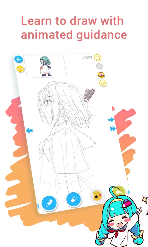 Jest to także aplikacja przeznaczona dla początkujących użytkowników. Użytkownik ma możliwość uczenia się rysowania na podstawie katalogu postaci.