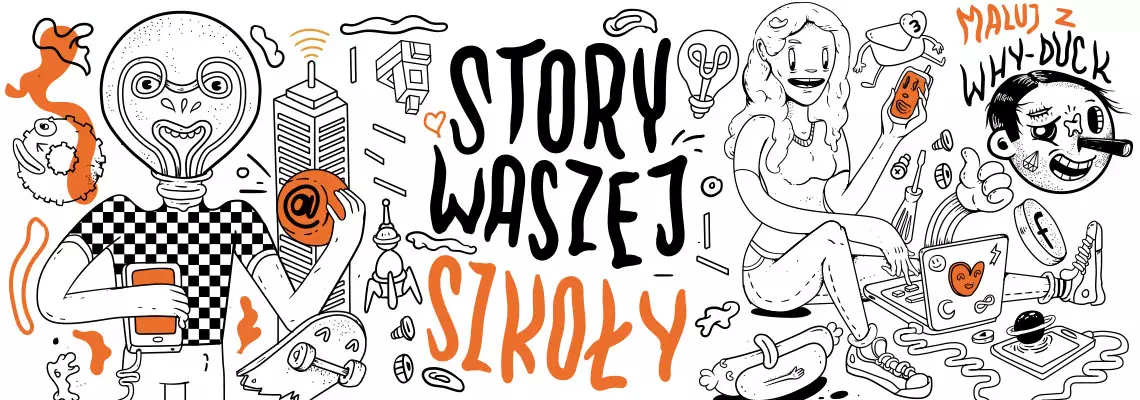 Podczas Digital Youth Forum 2017 Why-duck stworzył płótno „Story Waszej Szkoły”. Teraz biorę go w krzyżowy ogień pytań, aby dowiedzieć się, skąd czerpie inspirację i jak od kulis wygląda praca grafika.